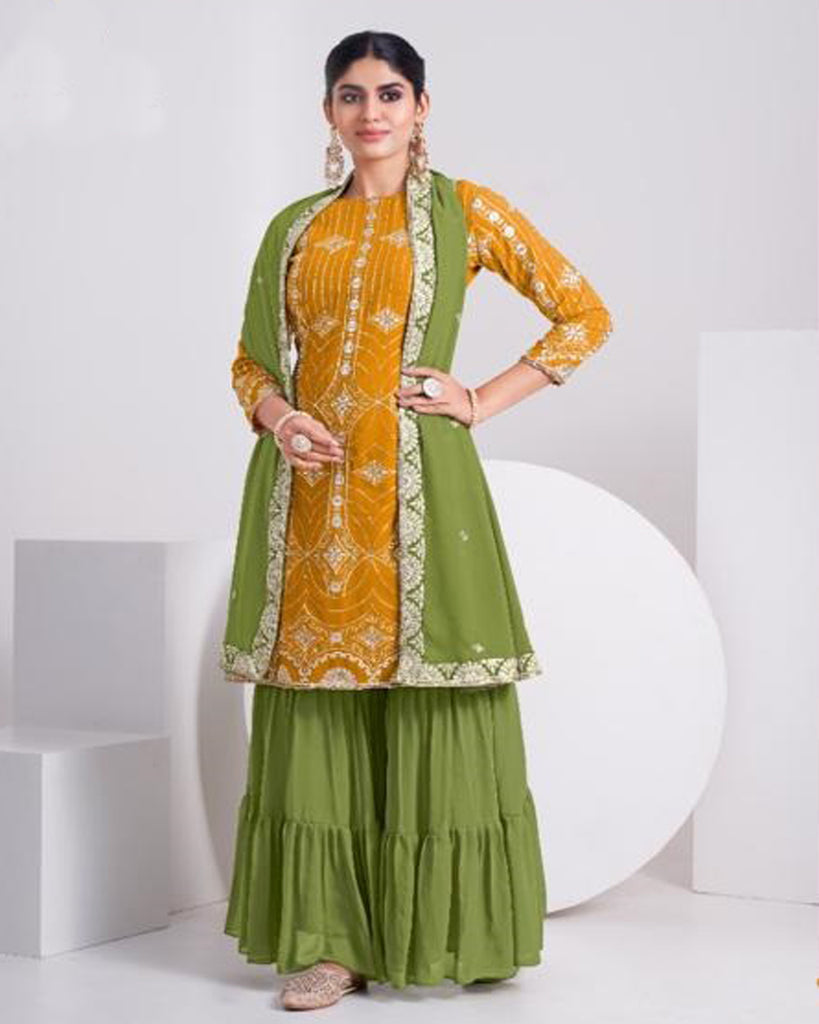 Designer Party Wear yellow & Green Color Palazzo Suit
